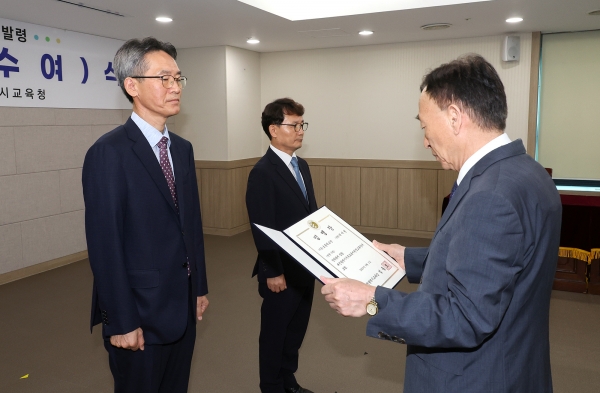 [충청뉴스큐] 대전광역시교육청은 8월 24일 10:00, 시교육청 701호실에서 2023.9.1.자 인사발령에 따른 ‘교육공무원 임명장 전수 및 수여식’을 개최했다.