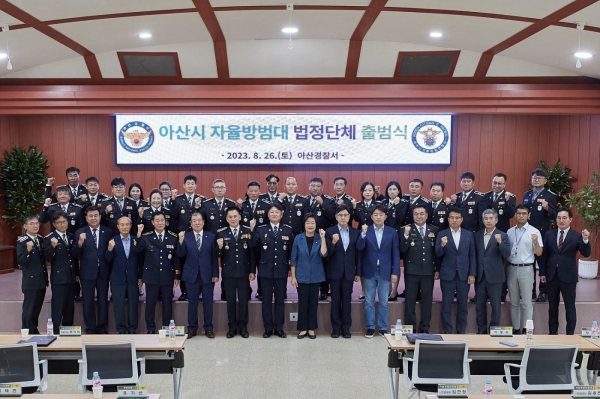 법정단체로서 새로운 첫걸음을 딛기까지 힘써주신 모든 분께 감사드린다"며 "우리의 자율 방범 활동이 아산, 그리고 더 나아가서는 우리나라의 치안유지에 중요한 밑거름이 되도록 최선을 다하겠다"고 밝혔다.