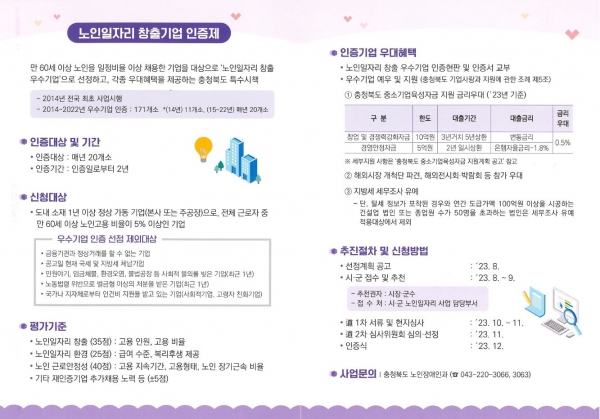 노인일자리 우수기업 인증 신청 관련 자세한 사항은 제천시청 노인장애인과 노인복지팀 노인일자리 담당자로 문의하면 된다.