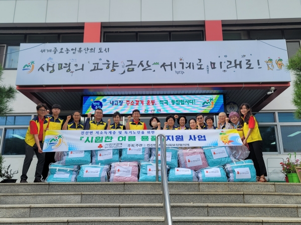 이 사업은 복지사각지대에 놓인 노인, 장애인 등 취약계층을 발굴해 안부를 확인하고 더운 여름을 시원하게 보낼 수 있도록 지원하는 진산면지역사회보장협의체 특화사업으로 3년째 이어지고 있다.