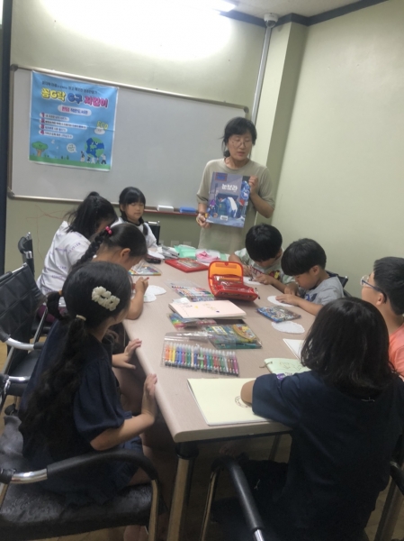 지난 8월에는 ‘개신 뜨란채’와 ‘산남 퀸덤’ 꼼지락 마을에서 초등학생들을 대상으로 각각 동화책 ‘지구야 많이 아파?’, ‘눈보라’를 읽고 지구를 지키기 위해 무엇을 하면 좋을지 알아보는 시간을 가졌다.