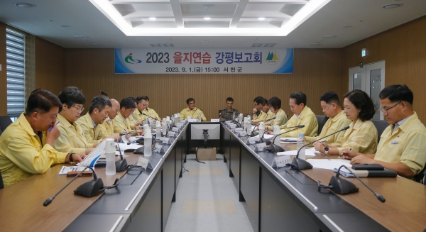[충청뉴스큐] 서천군이 지난 1일 군청 상황실에서 지난달 21일부터 4일간 진행된 2023년 을지연습의 성공적인 마무리에 대한 자체 강평 보고회를 가졌다.