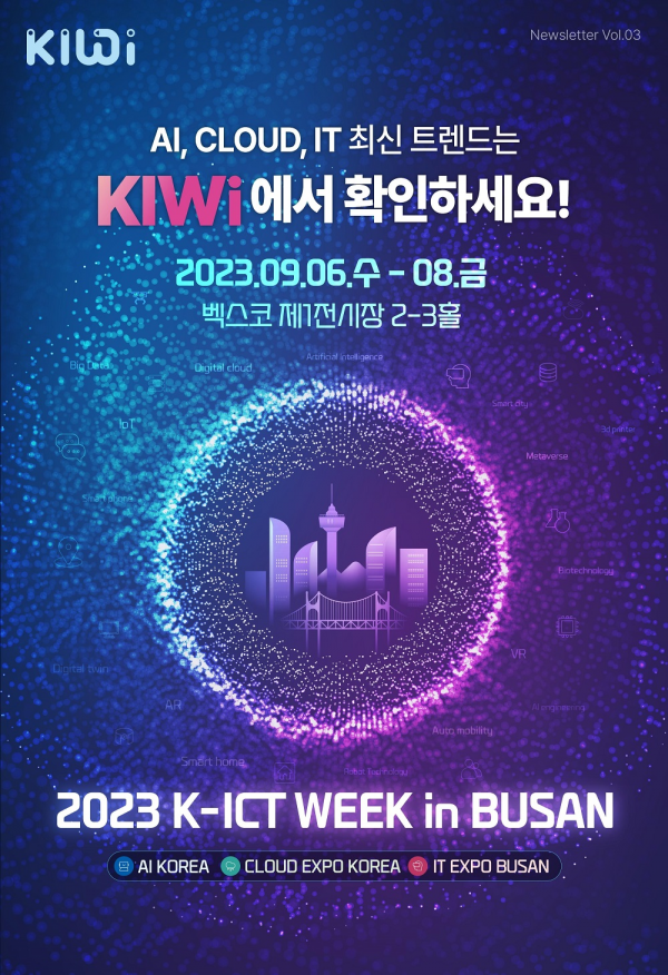 부산시는 오는 9월 6일부터 8일까지 3일간 벡스코 제1전시장에서 ‘2023 K-ICT WEEK in BUSAN’을 역대 최대 규모로 개최한다고 밝혔다.