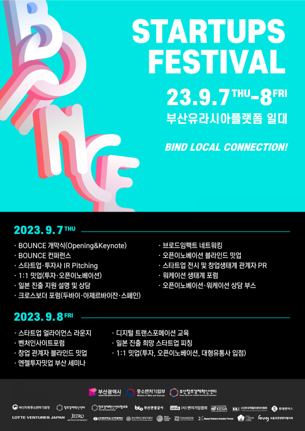 부산시는 올해로 7회째를 맞이하는 부산 대표 스타트업 행사 ‘바운스 2023’이 오늘 개막한다고 밝혔다.