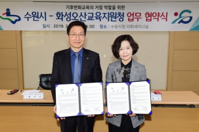 [충청뉴스큐] 수원시와 경기도화성·오산교육지원청은 18일 수원시청 의회세미나실에서 업무 협약을 체결하고, 화성·오산 지역 초·중학교 학생들의 진로·환경 교육 지원에 적극 협력하기로 했다.