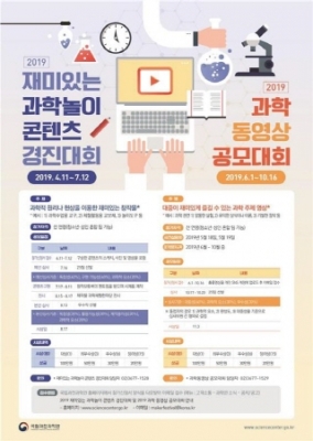 이와 같이 우리 주위에서 쉽게 구할 수 있는 재료나 도구를 이용해 과학적 원리나 현상을 보여주거나 재미있게 과학을 배울 수 있는 창작물을 만들어보는 ‘과학놀이 콘텐츠 공모전’이 열린다. 또 과학을 소재로 쉽고 재미있는 1분 내외 ‘과학동영상 공모전’도 열린다.