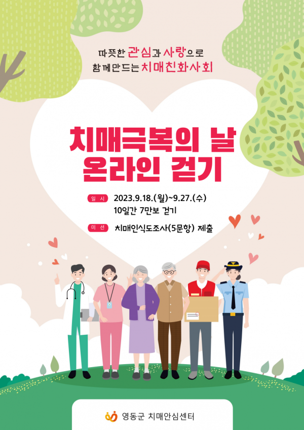 [충청뉴스큐] 충북 영동군은 치매극복의 날 기념에 맞춰 “2023년 치매극복의 날 기념 온라인 걷기 행사”를 개최한다.