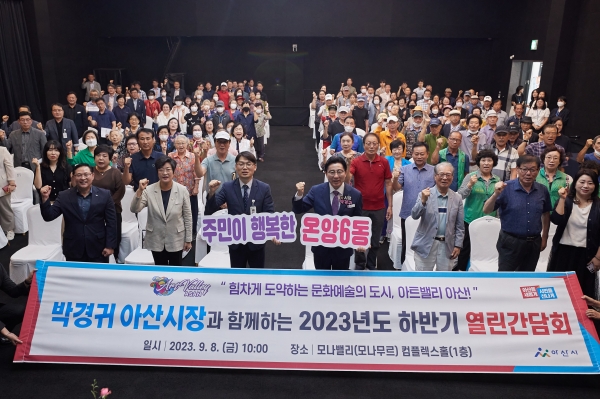 [충청뉴스큐] 박경귀 아산시장은 8일 모나밸리 컴플렉스홀에서 열린 ‘2023년 하반기 온양6동 열린간담회’에서 “온양6동은 ‘옛 온양’의 영화가 다시 찾아오는 시기가 다가오고 있다”고 말했다.