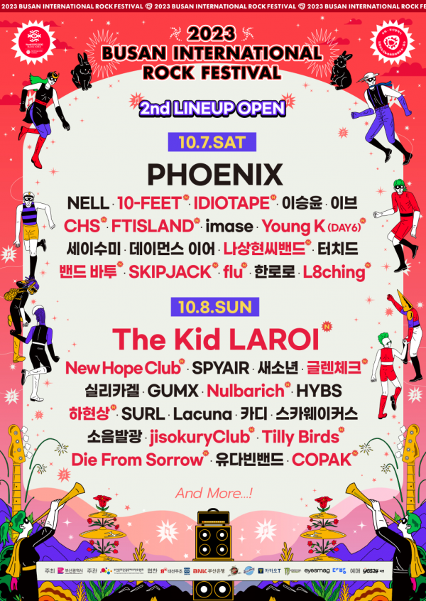 영화 '더 퍼스트 슬램덩크' 엔딩송을 부른 '텐피트'도 처음 부산을 찾아 감동적인 무대를 꾸밀 예정이며 최근 일본 최대 음악 페스티벌인 섬머소닉에 출연하는 등 활발한 활동을 펼치고 있는 일본의 '널바리치'도 4년 만에 한국을 찾는다.