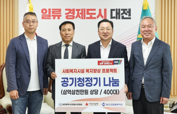 이날 기탁식에는 이장우 대전시장, 김신효 일신오토클레이브 대표, 김영태 대전시자원봉사연합회장 등이 참석했다.