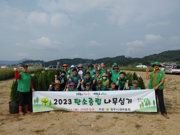 [충청뉴스큐] 청주시새마을회는 11일 상당구 가덕면 인차리 일원에서 기후위기 극복과 지속가능한 지구환경 보전을 위한 ‘2023 탄소중립 실천 나무심기 운동’ 행사를 진행했다.