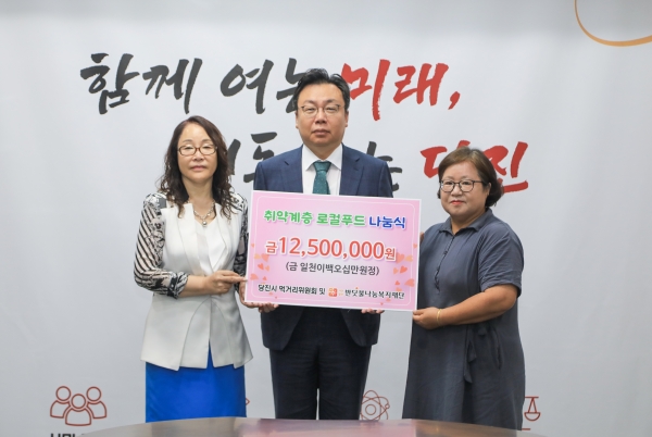 [충청뉴스큐] 당진시 먹거리위원회 로컬푸드분과와 반딧불나눔복지재단은 8일 기탁식을 통해 관내 복지사각지대 취약계층을 위한 로컬푸드 가공품을 전달했다.