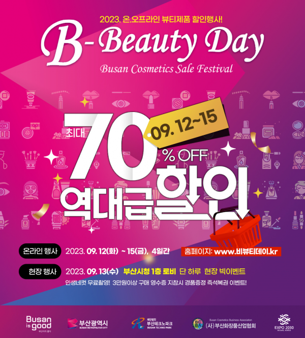 부산시는 민족 최대 명절인 추석을 맞아 오늘부터 15일까지 4일간 ‘2023 추석맞이 비-뷰티 데이’를 온·오프라인으로 병행해 개최한다고 밝혔다.
