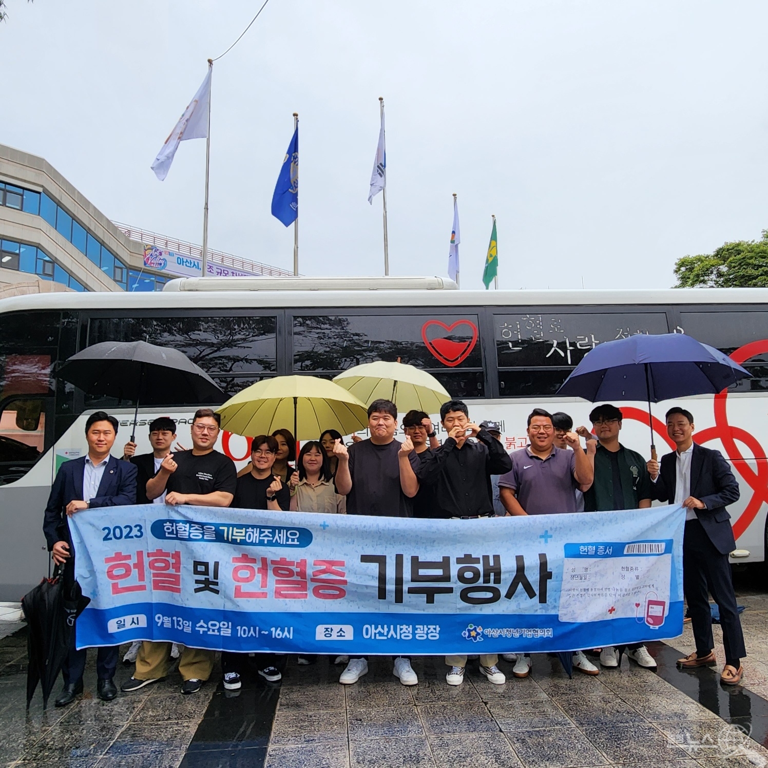 아산시청년기업협의회(회장 김진배)가 13일 아산시청 광장에서 ‘사랑의 헌혈 캠페인’을 실시했다"고 밝혔다.