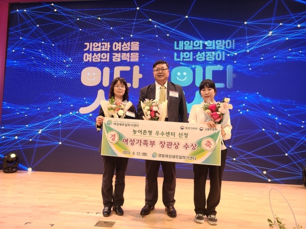 [충청뉴스큐] 충북 영동군 영동여성새로일하기센터는 마포구립중앙도서관에서 개최된‘2023년 제12회 새일센터 우수기관 및 유공자 표창식’에서 여성 가족부 장관상을 수상했다고 14일 밝혔다.
