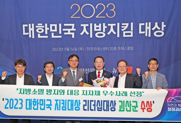 [충청뉴스큐] 충북 괴산군은 14일 서울 프레스센터에서 열린 ‘2023 대한민국 지방지킴 대상’ 시상식에서 ‘리더십 대상’을 수상했다고 밝혔다.