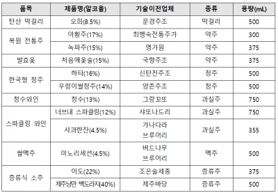 또한, 누룩 유래 토착 발효 미생물을 활용해 빚은 한국형 청주와 증류식 소주, 쌀을 활용한 쌀맥주, 무독화 옻술, 지역 특산품으로 만든 고품질 와인 등도 선보일 예정이다.