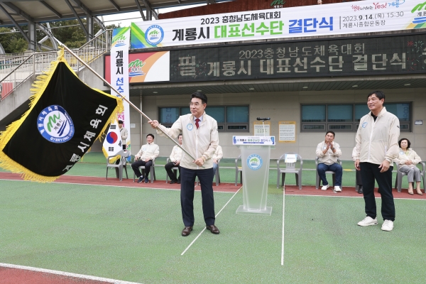 [충청뉴스큐] 계룡시는 14일 계룡시 종합운동장에서 이응우 시장을 비롯한 임원 등 200여명이 참석한 가운데 2023 충청남도체육대회 결단식을 가지고 선전을 결의했다.