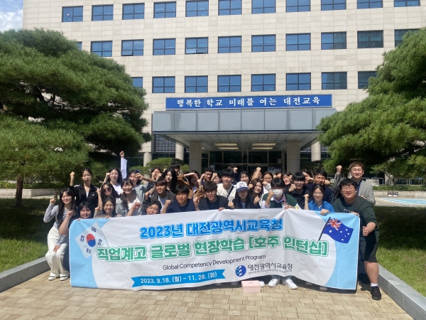 [충청뉴스큐] 대전광역시교육청은 9월 18, 대전지역 특성화고 33명의 학생들이 글로벌 현장학습[호주인턴십]을 위해 호주 브리즈번시로 출국했다고 밝혔다.