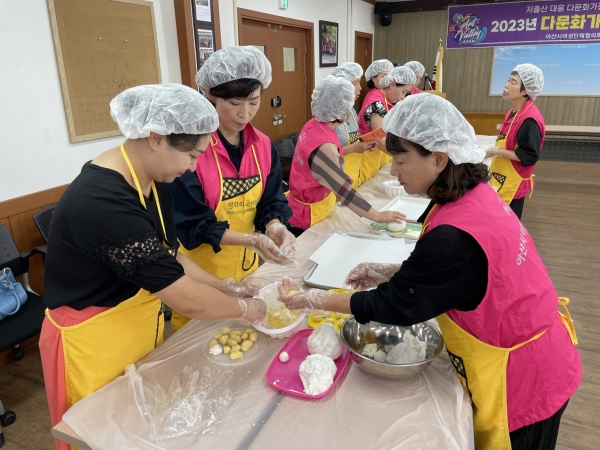 [충청뉴스큐] 아산시 여성단체협의회는 지난 18일 협의회 사무실에서 여성단체 지도자와 다문화가정 멘티 50여명이 참석해 ‘송편만들기’체험 행사를 진행했다.