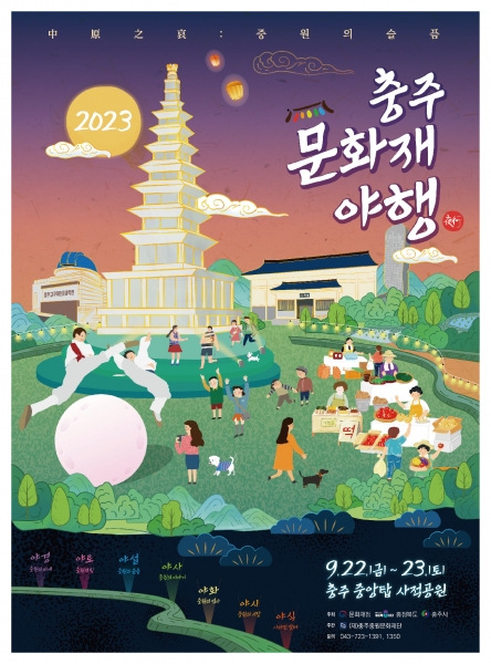 충주 탑평리 칠층석탑, 충주고구려비, 무형문화재 등 지역을 대표하는 역사문화자원을 활용한 야간 문화재관람과 공연, 체험, 장터 등이 곳곳에서 진행된다.