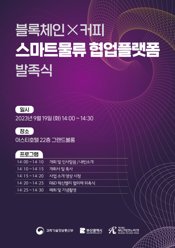 부산시는 어제 오후 2시 아스티호텔 부산에서 ‘블록체인×커피 스마트물류 기술사업화 협업플랫폼’ 사업단 발족식을 개최했다고 밝혔다.
