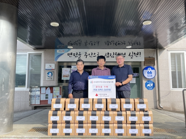 [충청뉴스큐] 옥천군 안내면 현리 소재 쿵더쿵 카페는 지난 19일 면내 경로당에 전달해 달라며 안내면지역사회보장협의체에 50만원 상당의 한과 25박스를 기탁했다.