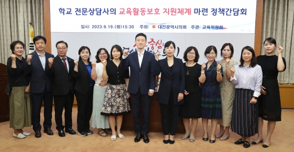 [충청뉴스큐] 대전시의회는 이중호 의원 주재로 지난 19일 시의회 소통실에서 ‘학교 전문상담사 교육활동보호 지원체계 마련 정책간담회’를 개최했다.
