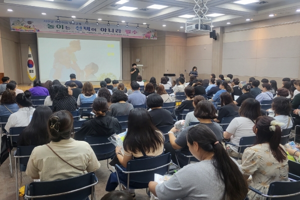 이번 교육은 충남어린이집연합회 서천군지회 주관으로 실시됐으며 충남육아종합지원센터 김미정 센터장을 강사로 초빙해 ‘놀이는 선택이 아니라 필수’라는 주제로 교육이 진행됐다.