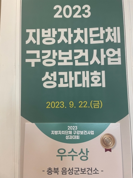 [충청뉴스큐] 음성군보건소는 지난 22일 서울 코엑스에서 진행된 2023년 지역사회 구강보건사업 성과대회에서 우수기관으로 선정돼 보건복지부장관상을 수상했다.