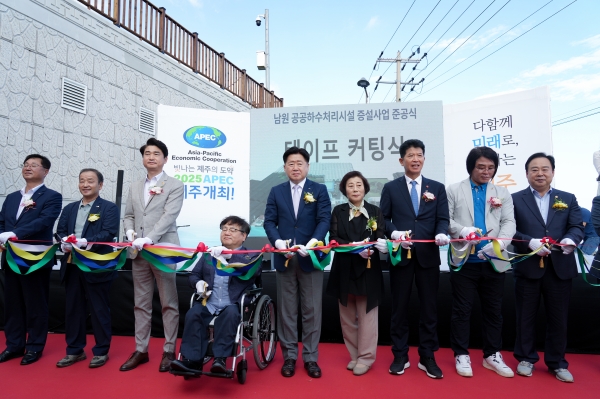 제주도는 25일 오후 3시 30분 서귀포시 남원 하수처리장에서 오영훈 지사, 김경학 제주도의회 의장 및 도의원, 영산강유역환경청, 지역주민 등 150여명이 참여한 가운데 ‘남원 공공하수처리시설 증설사업’ 준공식을 개최했다.