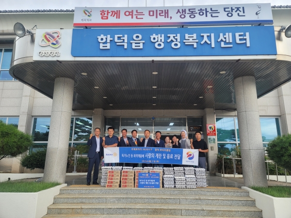 [충청뉴스큐] 합덕로타리클럽이 지난 21일 달걀 100판 음료수 1,000개를 기부했다.