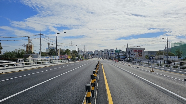 이번 전 구간 개통은 2020년부터 177억원을 투입해 연장 102m, 폭 31.5m 확장공사를 진행해온 온천교 재가설공사 완료에 따른 것이다.
