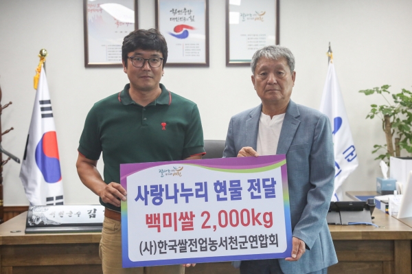 [충청뉴스큐] ㈔한국쌀전업농서천군연합회가 지난 25일 추석 명절을 맞이해 관내 저소득 및 취약계층에 전달해 달라며 백미 2010㎏을 서천군에 기탁했다.