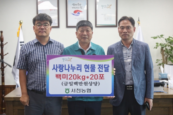 [충청뉴스큐] 서천농협이 지난 25일 추석 명절을 맞이해 관내 저소득 및 취약계층에 전달해달라며 100만원 상당의 백미 400㎏를 서천군에 기탁했다.