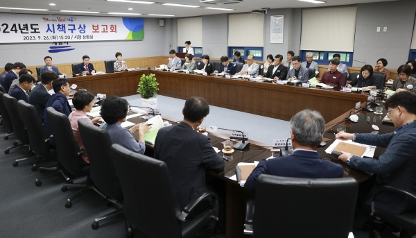 [충청뉴스큐] 계룡시는 지난 9월 26일 시청 상황실에서 이응우 시장을 비롯한 정책자문단 위원장 및 부위원장, 간부공무원 등 50여명이 참석한 가운데 ‘2024년 시책구상 보고회’를 개최했다고 밝혔다.