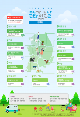 또한 문화가 있는 날에는 울창한 숲 속에서 휴식과 함께 공연 등 다양한 문화행사도 즐길 수 있는 국립자연휴양림에 무료로 입장할 수 있다. 무료입장은 충남 서산시 용현 자연휴양림, 전북 진안군 운장산 자연휴양림, 울산 신불산폭포자연휴양림, 강원 정선군 가리왕산 자연휴양림을 포함해 전국 40개소에서 진행되며, 무료입장이 가능한 자연휴양림은 문화가 있는 날 공식 누리집에서 확인할 수 있다.