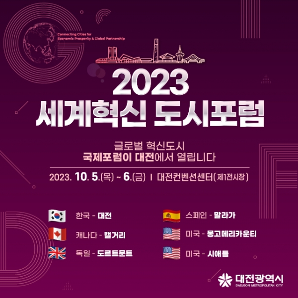 [충청뉴스큐] 대전시는 5일부터 6일까지 이틀간 대전컨벤션센터에서 ‘2023 세계혁신도시포럼’을 개최한다.