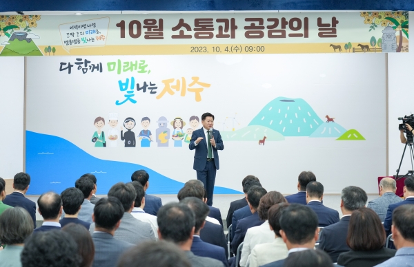 [충청뉴스큐] 10월 소통과 공감의 날 행사가 4일 오전 9시 제주도청 4층 탐라홀에서 200여명의 공직자들이 참석한 가운데 개최됐다.