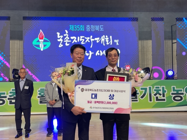 정 씨는 지난 7월 충북도 관계자 및 전문가의 엄격한 현지심사 및 면접을 거쳤으며 지역 선도 농가로서 동이면 포도농가의 소득 증대에 기여한 공로를 인정받아 수상하게 됐다.