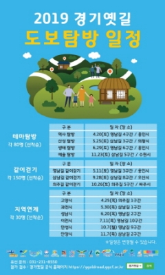 박종달 경기도 문화유산과장은 “3월부터 11월까지 진행되는 탐방행사가 일상의 활력과 경기도 역사문화에 대한 다양한 정보를 제공할 수 있도록 기획했다” 면서 “경기옛길을 통해 즐거움과 배움의 유익함을 함께 얻을 수 있도록 도민의 많은 관심을 부탁드린다”고 말했다.