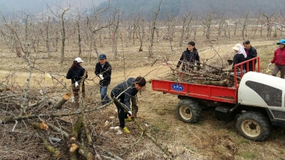 이들은 본격 영농철을 맞아 일손이 부족한 과수농가를 직접 찾아가 잡목 제거 작업을 도우며 구슬땀을 흘렸다.