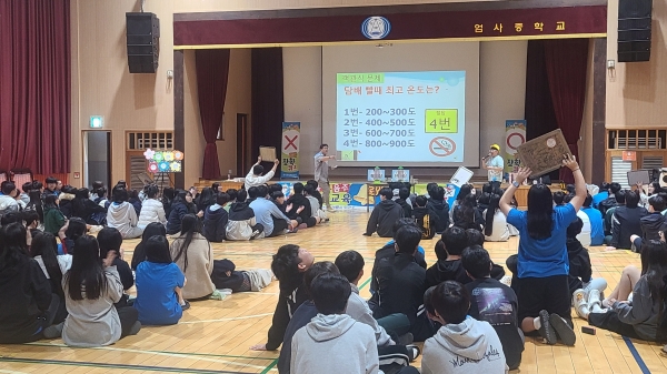 13일 엄사중학교와 계룡고등학교 학생을 대상으로 ‘흡연‧음주예방 골든장학퀴즈’를 열었다(사진=계룡시)