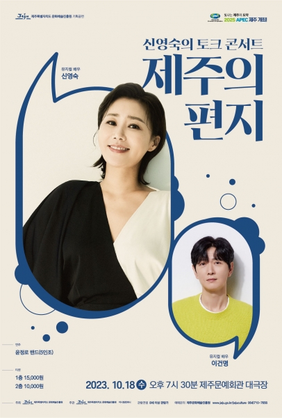 [충청뉴스큐] 제주특별자치도 문화예술진흥원은 기획공연으로 뮤지컬배우 신영숙 토크 콘서트 ‘제주의 편지’를 오는 18일 오후 7시 30분 제주문예회관 대극장에서 선보인다고 밝혔다.