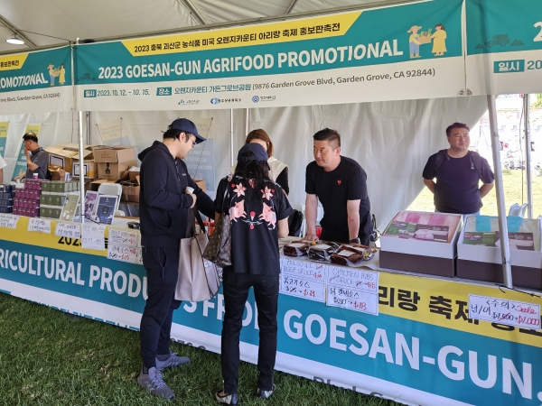 지난 12일부터 4일간 미국 오렌지카운티 가든그로브 공원에서 열린 ‘아리랑 축제’에 괴산군 9개 기업이 42개 품목으로 판촉전에 참여했다.