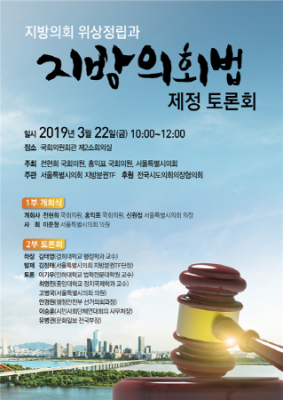 [충청뉴스큐] 울특별시의회 지방분권TF 김정태 단장은 오는 22일 오전 10시 국회의원회관 제2소회의실에서 “지방의회 위상정립과 지방의회법 제정 토론회”를 개최한다고 밝혔다.