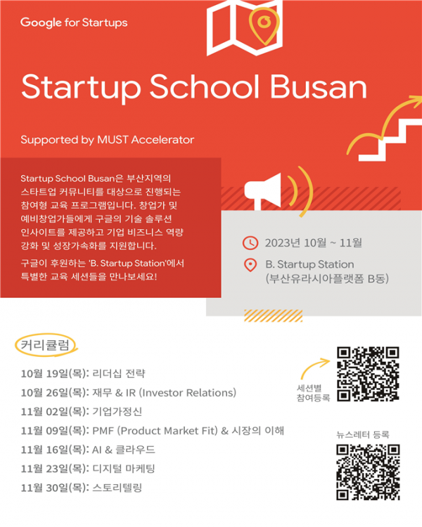 ‘스타트업 스쿨 부산’은 부산시, 구글 스타트업 캠퍼스, 머스트액셀러레이터가 함께 마련한 스타트업 참여형 교육 프로그램이다.