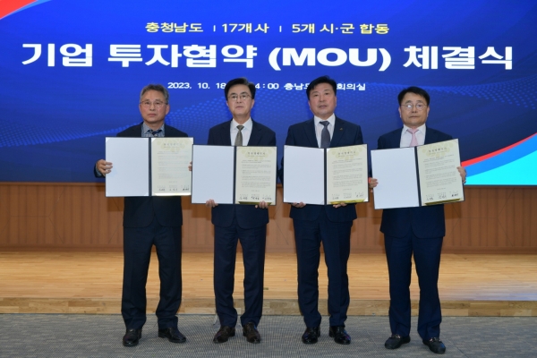 [충청뉴스큐] 예산군은 지난 18일 충남도청 대회의실에서 국내 유수 기업 2개사와 총 3544억원 규모의 충남도 합동 투자협약을 체결했다고 밝혔다.