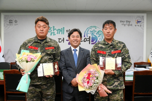 [충청뉴스큐] 부여군이 지난 19일 2023 대백제전 행사기간 중 수상 인명구조에 기여한 민간부문 군정 발전 유공자 3명에 대해 감사패를 수여했다.