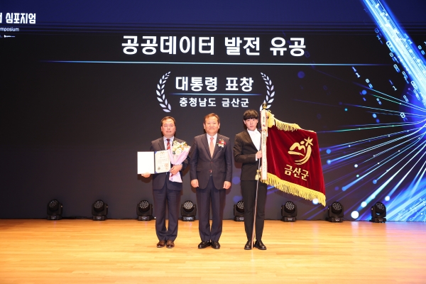 [충청뉴스큐] 금산군은 지난 19일 행정안전부 주최로 서울 코엑스에서 개최된 ‘공공데이터 10주년 기념식’에서 발전 유공 대통령 표창을 받았다.